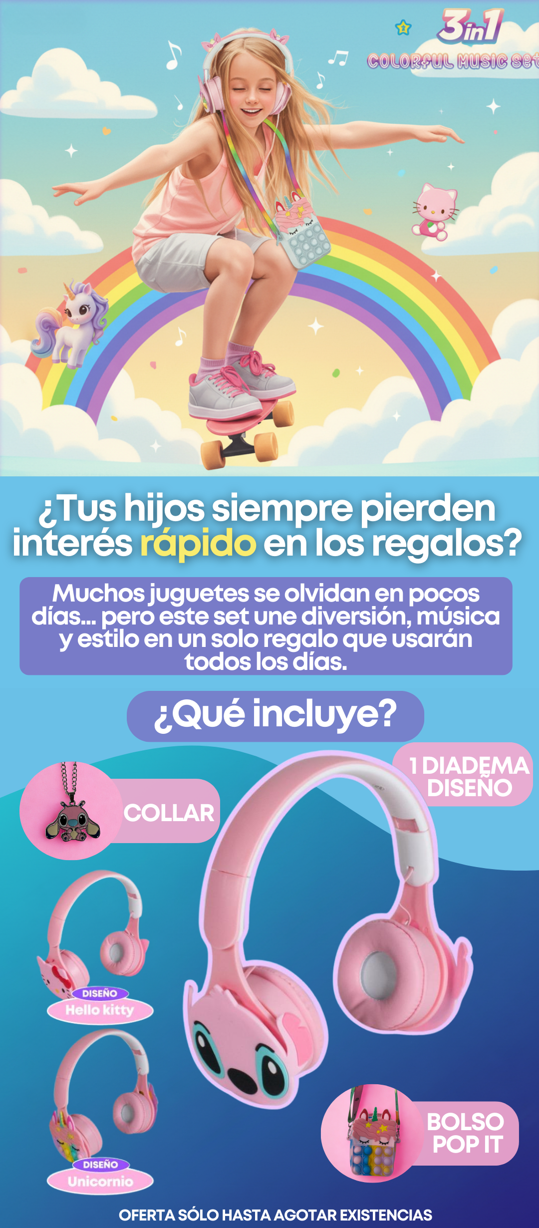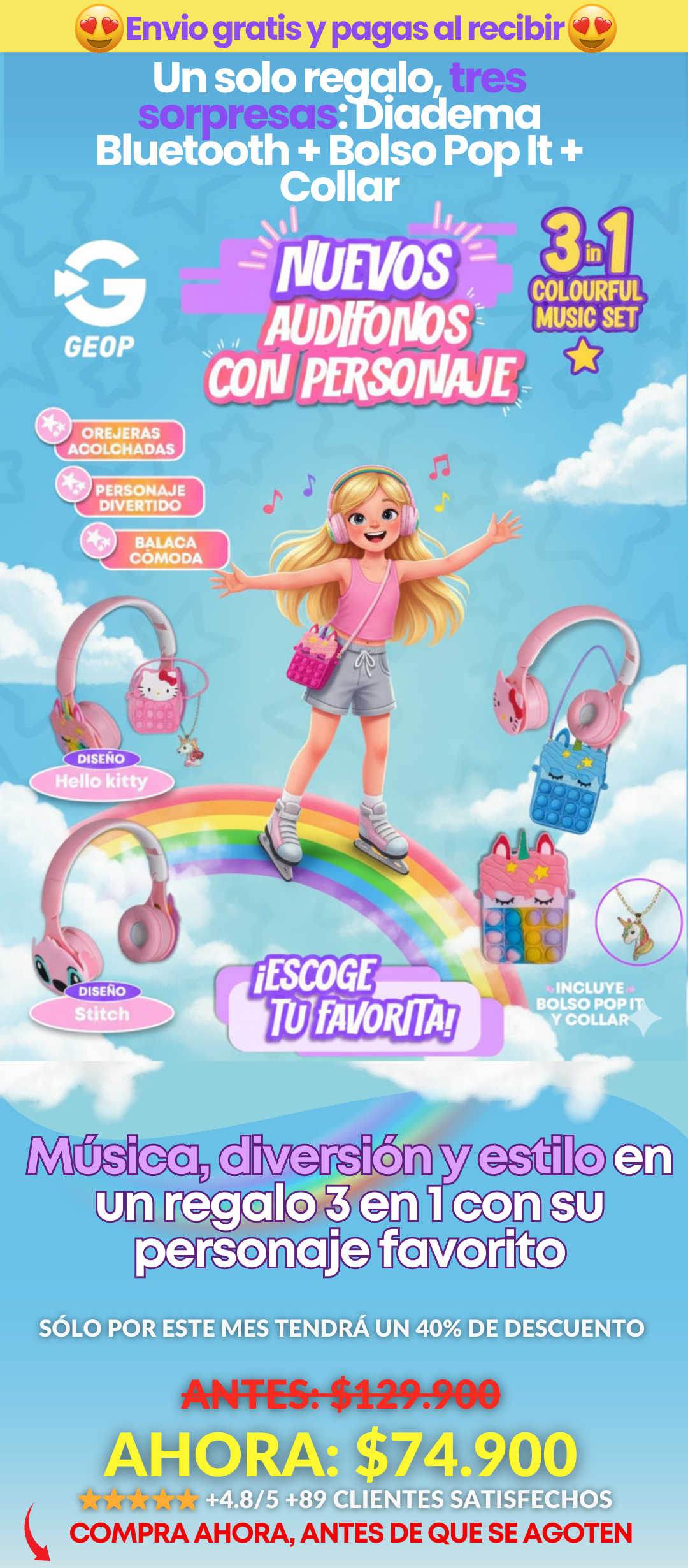 ¡Sí! Siempre recibes los 3: diadema, bolso Pop It y collar.